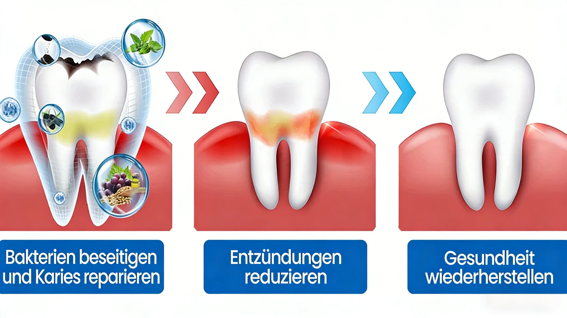 Dies hilft, Schmerzempfindlichkeit zu lindern, und schafft eine stabile Umgebung für die kontinuierliche Mineralregeneration.