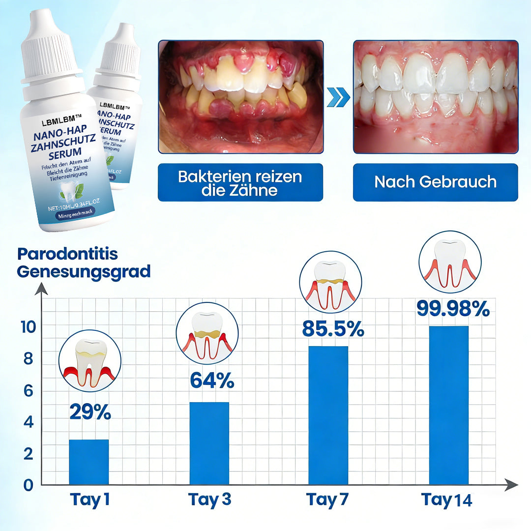 Nachdem ich das LBMLBM™ NanoHAP Zahnschutz-Serum verwendet hatte, spürte ich die beruhigende Wirkung fast sofort. Innerhalb von zwei Tagen gingen die Reizungen deutlich zurück, und mein Zahnfleisch fühlte sich so gesund an wie schon lange nicht mehr. Die sanften Mineralien haben einen größeren Unterschied gemacht, als ich erwartet hatte.“